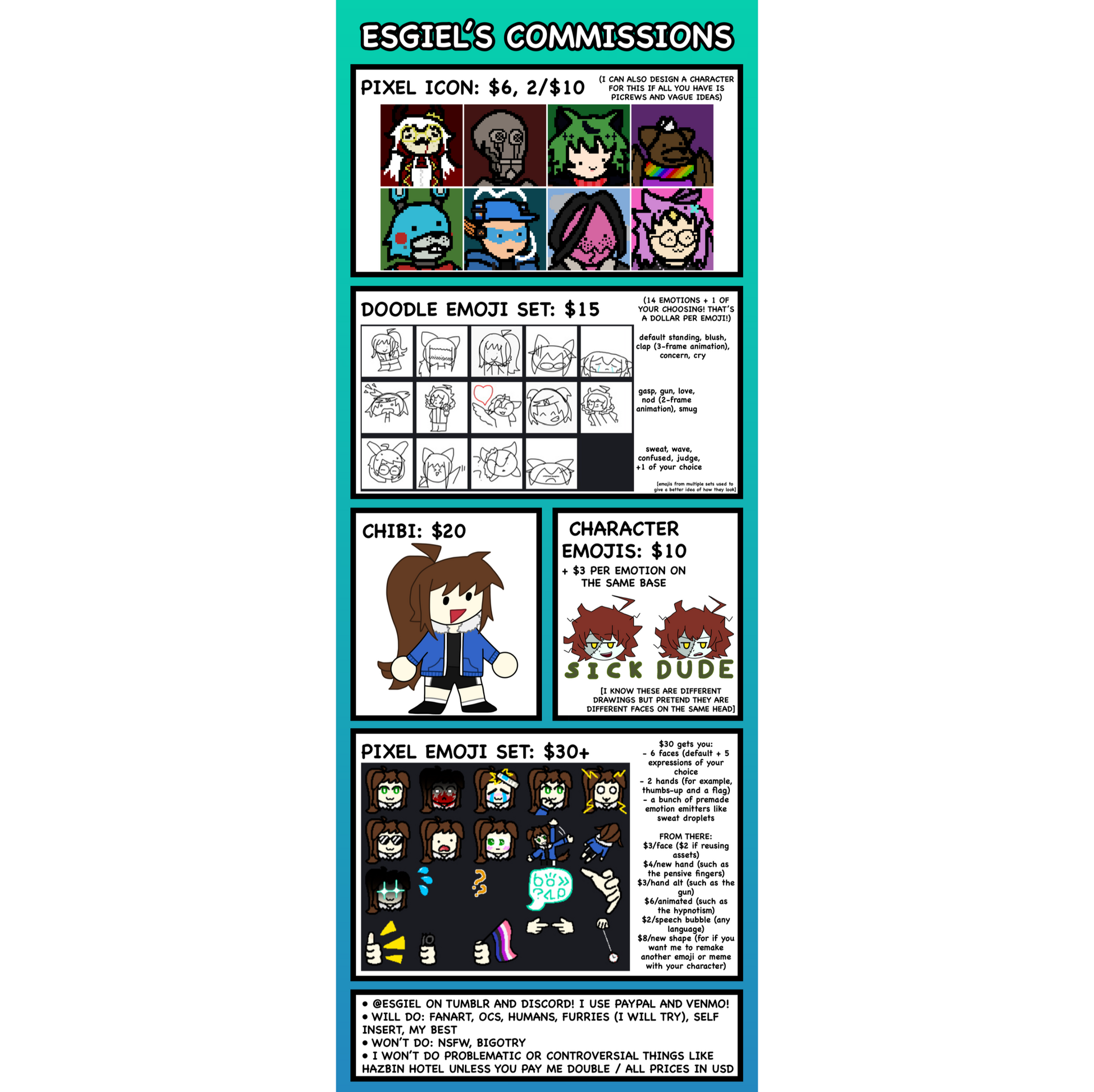 I'm very flexible! If you want something slightly different than what's technically offered, just ask! I take PayPal and Venmo, and all prices are in USD!